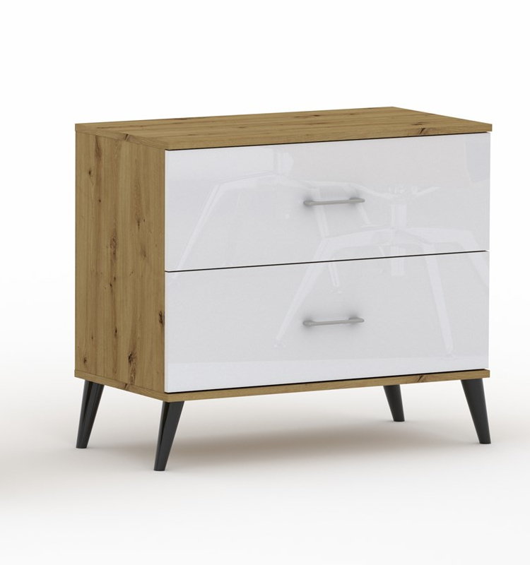 Komoda Pola 2N - 4 szerokości. Dab Artisan/ połysk, 2 pojemne szuflady na nożkach