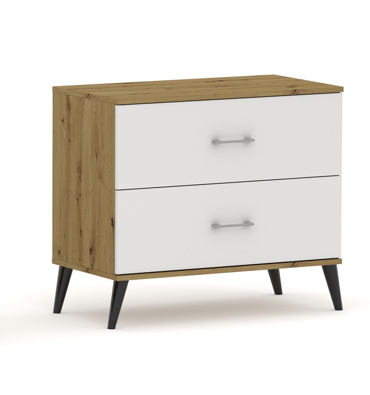 Komoda Pola 2N - 4 szerokości. Dab Artisan/bialy, 2 pojemne szuflady na nożkach