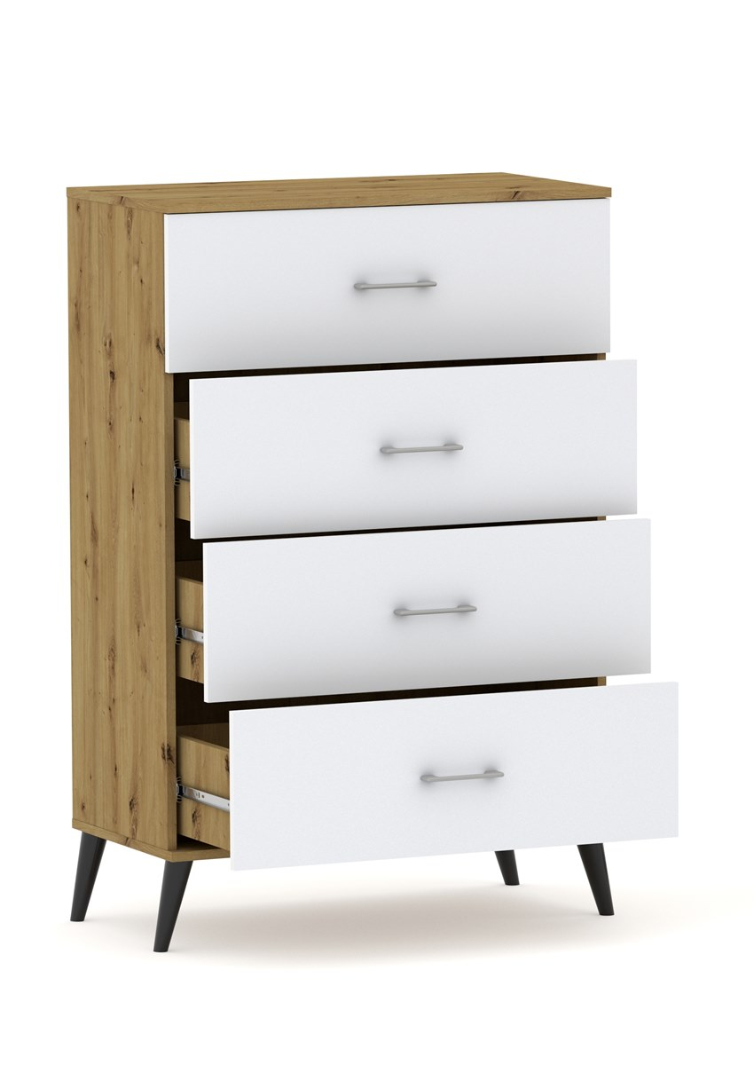 Komoda POLA 4N Dąb Artisan / biały - 4 szerokości 50 - 80 cm skandynawski styl