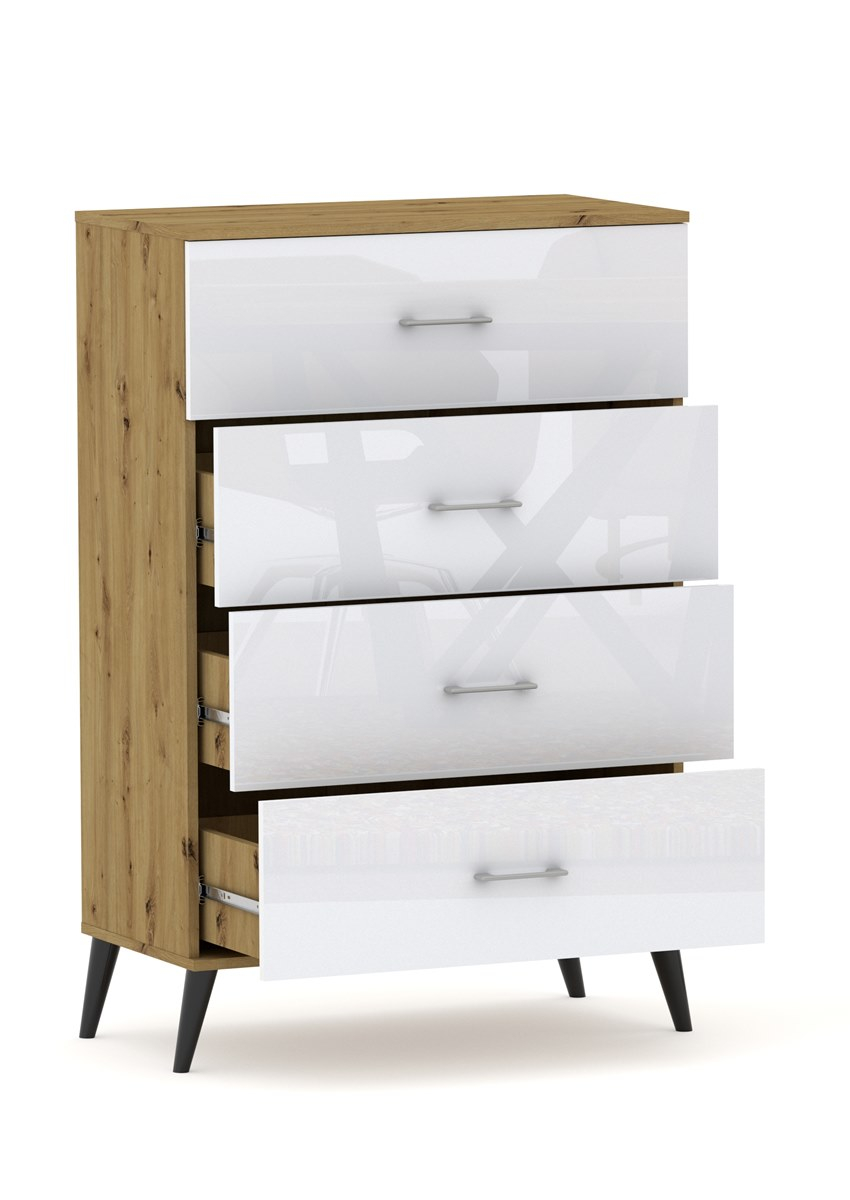 Komoda POLA 4N Dąb Artisan / Połysk - 4 szerokości. 50 - 80 cm Pojemna