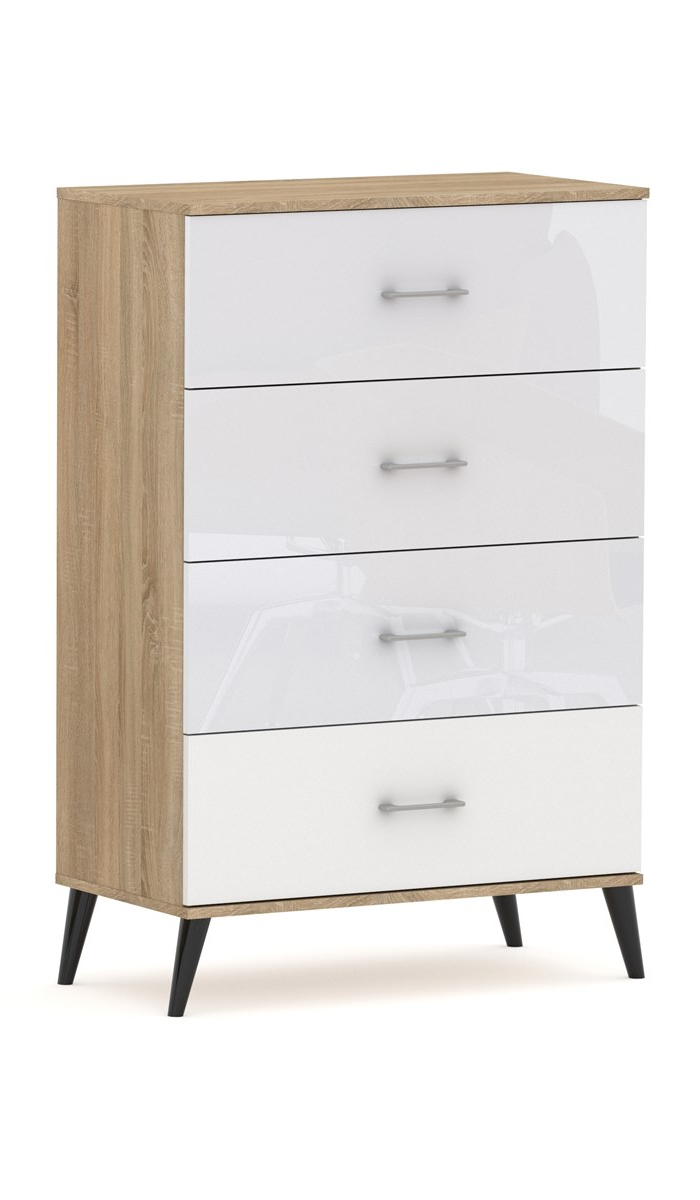 Nóżki skośne, drewniane w kolorze czarnym o wysokości 10 cm. Możliwość montażu komody bez nóżek.